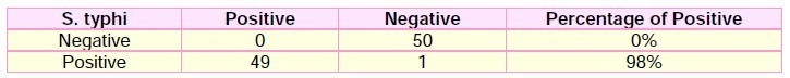 美國CorteZ 傷寒桿菌抗原試驗結(jié)果相比,從實驗室提供的糞便樣本患者糞便文化積極和抗體陽性通過維達(dá)爾試驗為傷寒桿菌。50個陽性和50陰性標(biāo)本然后測試與傷寒桿菌快速測試。測試結(jié)果顯示98%的整體相關(guān)性在積極的樣品和100%的關(guān)系