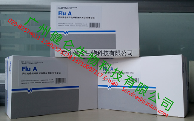 甲型流行性感冒病毒抗原檢測試劑盒(膠體金法)的檢測靈敏度為3.0×104 TCID50/每次檢測。