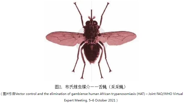 經(jīng)舌蠅(如圖2)叮咬、母嬰垂直傳播、輸血或器官移植等途徑均可感染布氏錐蟲。