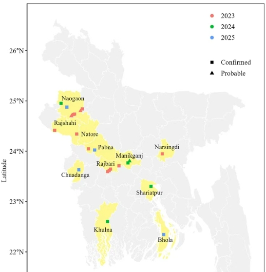 過去幾年里,印度及孟加拉國陸續(xù)報告過零星病例和小規(guī)模聚集。